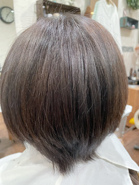 そこにカラーをし髪の毛はグレージュにさせてもらいました。
