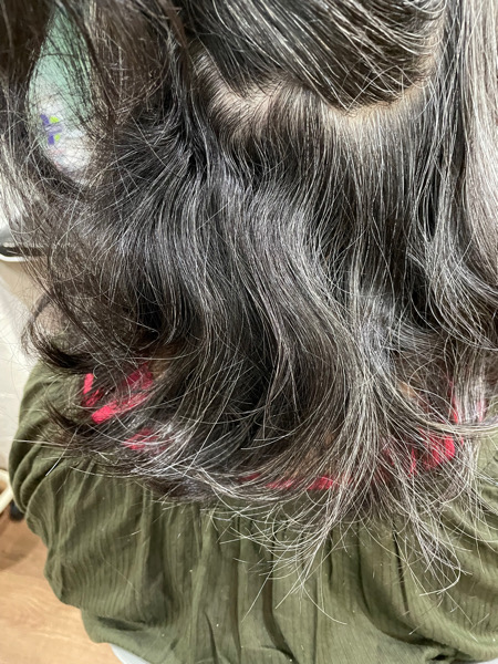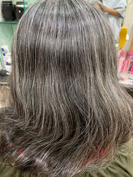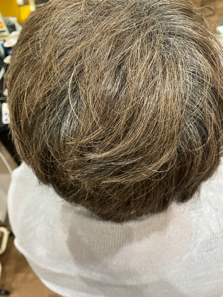 白髪が気になり、今までは白髪染めをしていたけどブリーチをして白髪をボカシて欲しいと言うお客様。