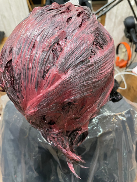 今回は白髪を染めながら艶のあるピンク系のカラーにします。