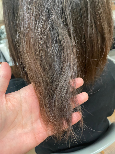 多少のダメージもあるので今回はこちらのお客様はカットカラーとジュエリーシステムトリートメントをします。