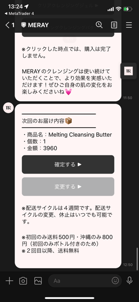 そして何を購入するか決めた時、又は配送期間を変えたい、解約したいなどもLINEから伝えると