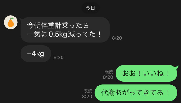 今回のご報告のお客様も丁度1ヶ月が経つぐらいですので4キロは平均的な痩せ方なので良いリズムになっています。
