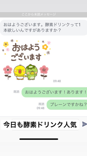 そしてLINEからも酵素ドリンクのご注文を受けてます。