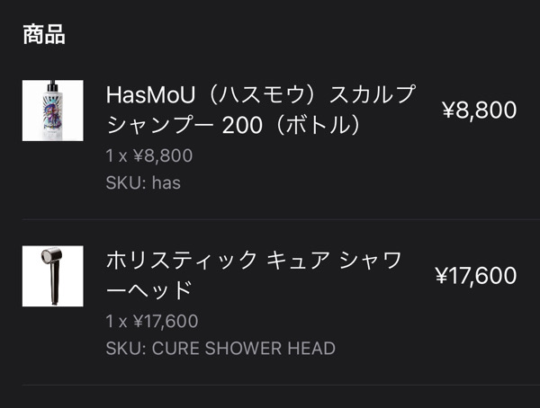 ハスモウシャンプーとホリスティックのシャワーヘッドです。