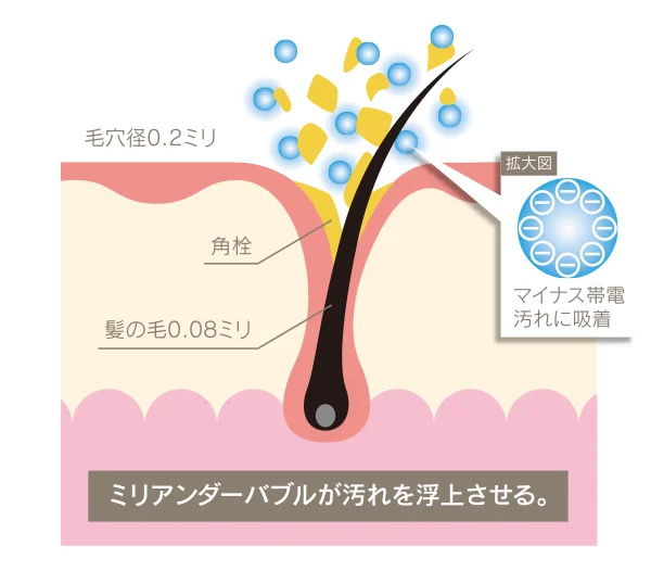 かつ微細バブルで、毛穴の奥までクレンジングもできますので肌荒れ等のお悩みも解決できます。
