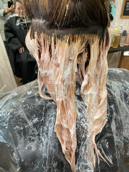 ブリーチをしている髪の毛にはビータークリームとALTO オイルとクロノスオイルを混ぜてもらうとブリーチ毛でもサラサラになるのでオススメです。