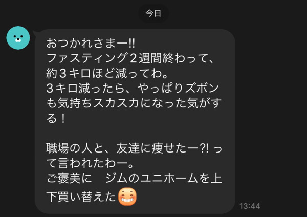そんな2週間プログラムをして頂いたお客様からLINEを頂きました。