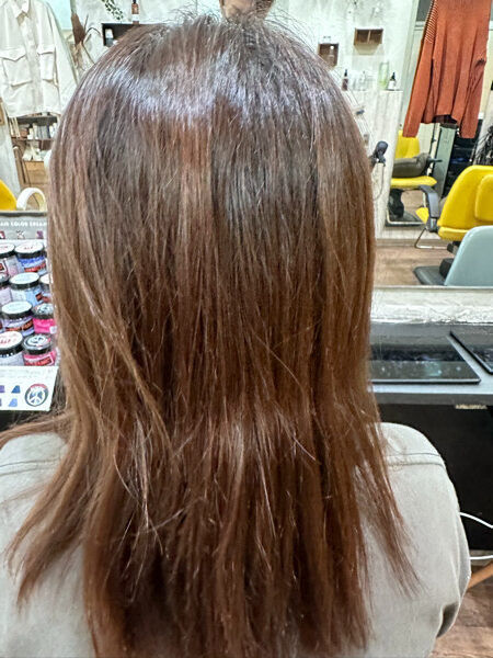 今回は根本の白髪を染めて全体に明るめのアッシュを入れていきます。