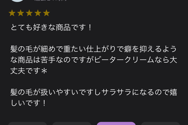 ビータークリームのレビューを頂きました