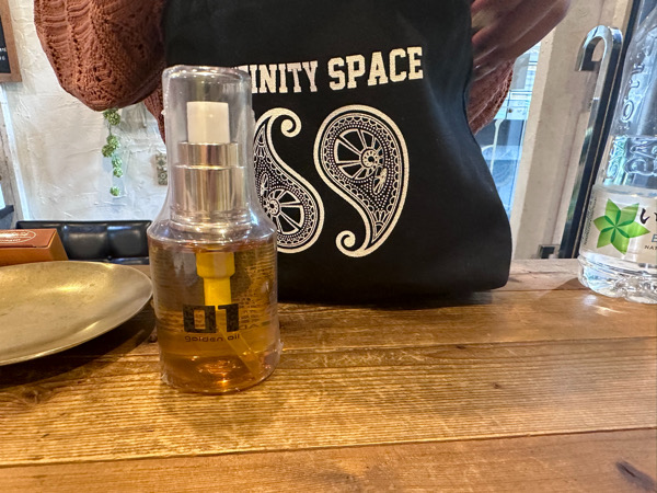 つけすぎると髪の毛が渇きにくくなるのでロングでもよく伸ばして使ってもらうと良いオイルです。