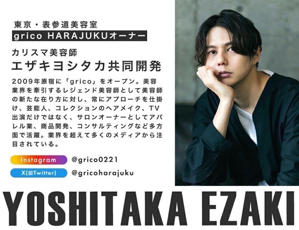 まずこちらのシャンプーとトリートメントですが原宿の美容室grico 代表のエザキヨシタカさんが共同開発されてます。