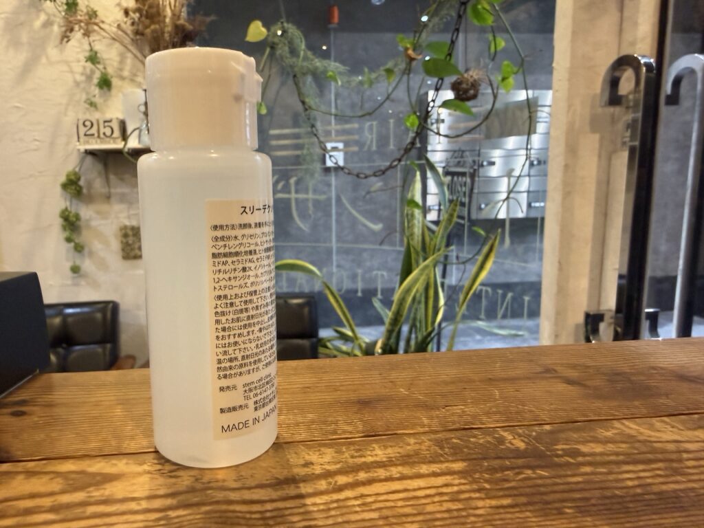 お顔以外にも使えるのですが、スリーデクソの乳液もあり、そちらもお顔以外にも身体で気になる部位に塗ってもらうことでの代謝アップにより細見え効果、手荒れなどのケアに乳液は有効でこちらも男女ともに購入してもらえてます。