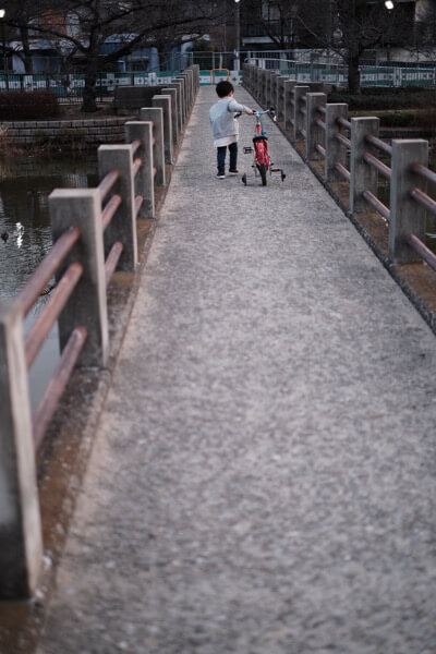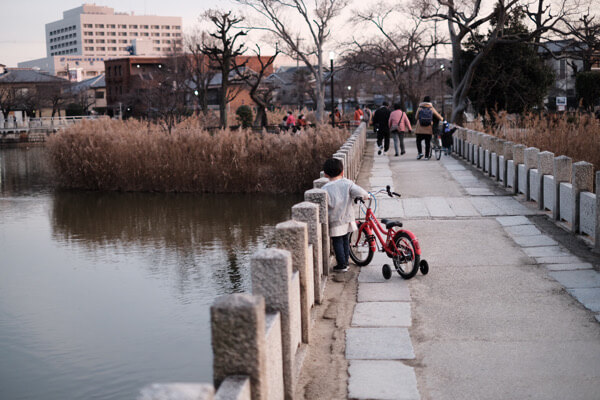 公園の真ん中の橋を渡り