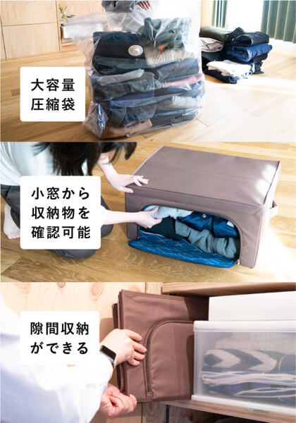 こちら圧縮をさせた服をなおせてしかも小窓がついているので後で取り出しやすくなっています。