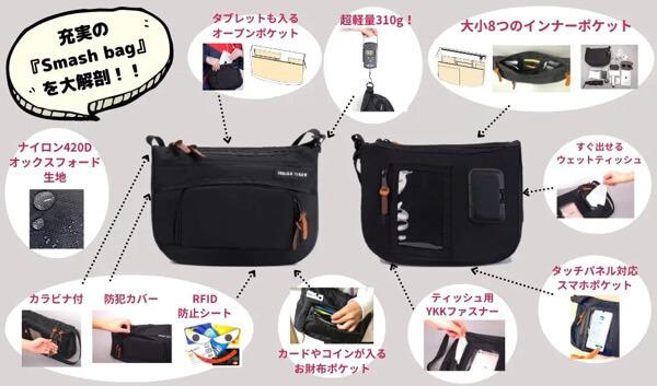 【子供とのお出かけも手ぶらで】9個のポケット搭載。財布付き多機能ショルダーバッグ