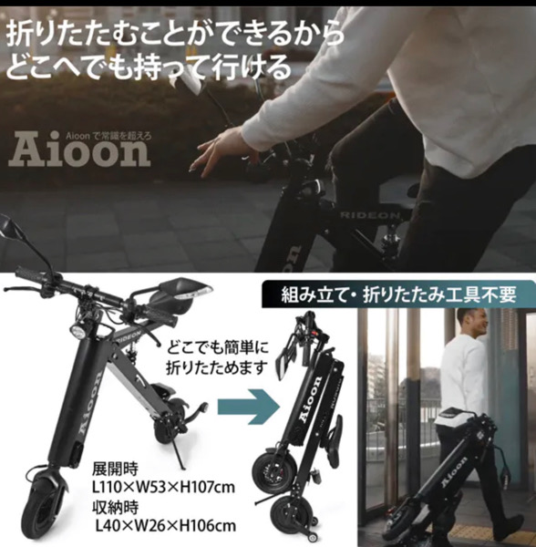 公道も走れて持ち運べる超コンパクトEVバイク 3秒で展開!Aioon アイオーン