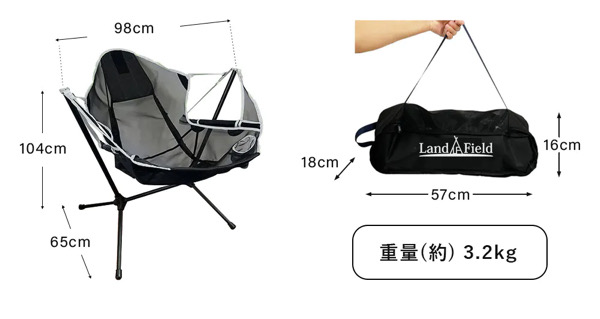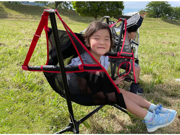 ハンモックのようにゆれるキャンピングチェアです。