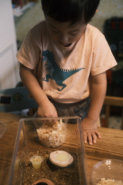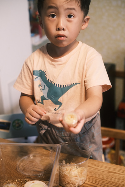 と、いうことで飽きて2人で恐竜のおもちゃを作ります。