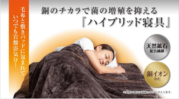 岩盤浴のような暖かさの毛布と敷きパッドです。