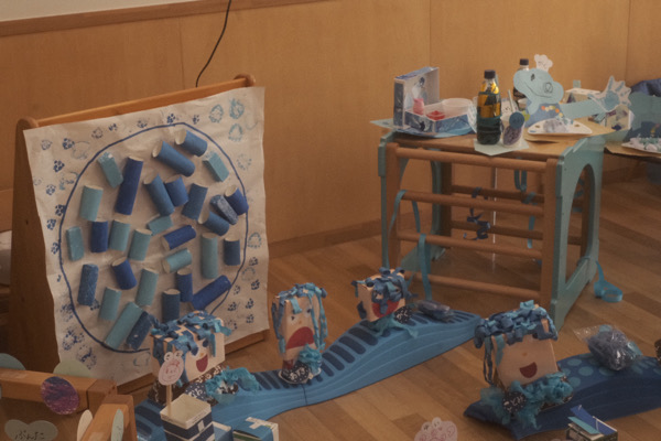 保育園、幼稚園に子供達の作った物を展示してます。