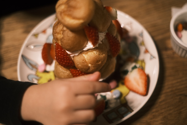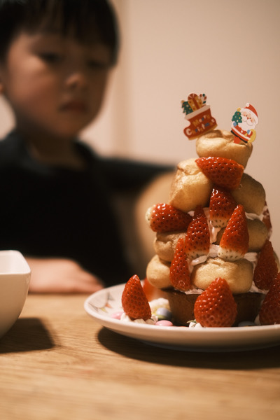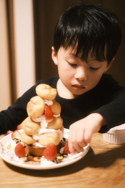 生クリームなどは食べれないので長男がプチシューをデコレーションしてくれます。
