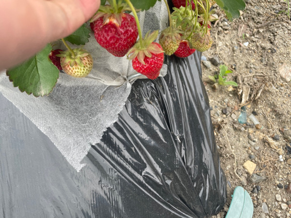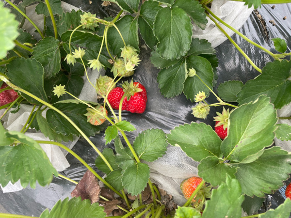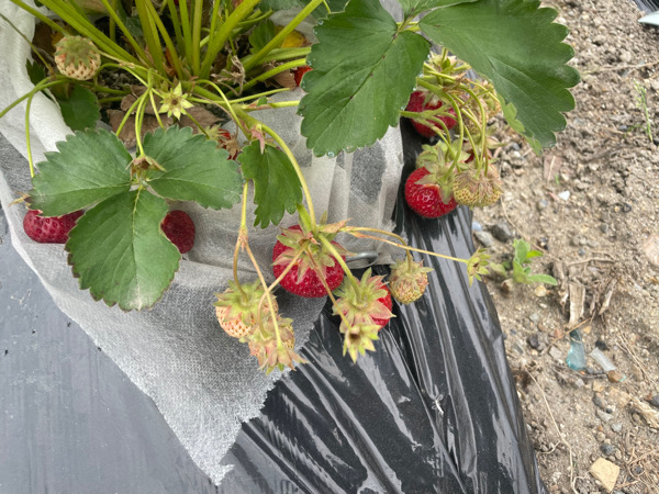 イチゴができてたので取ってます。