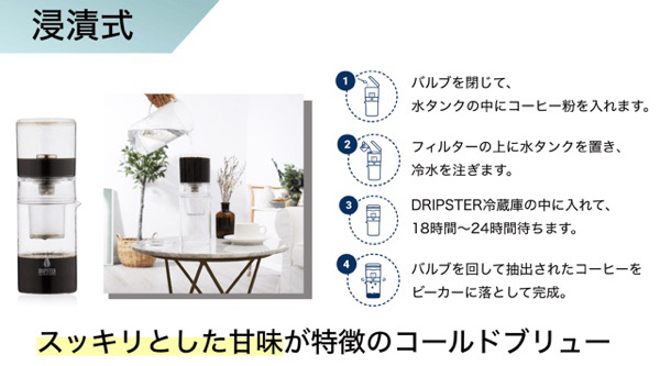 ※浸漬式=コーヒー粉と水を長時間かけて漬ける抽出方式