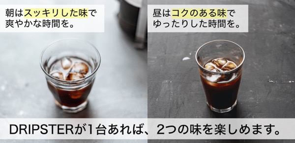 滴下式で水を使用した低温抽出のため、苦味やエグみといったような雑味成分は抑えられ、旨味成分のコクや香りを最大限に抽出することが可能です。