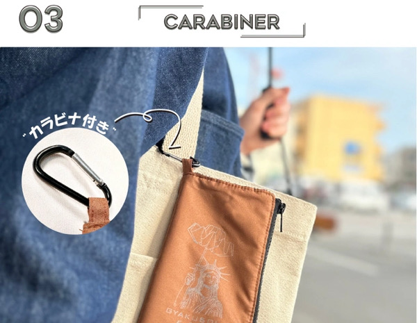 収納ケースにカラナビが付いていて、傘を使用している時のケースを鞄につけれてたりします。