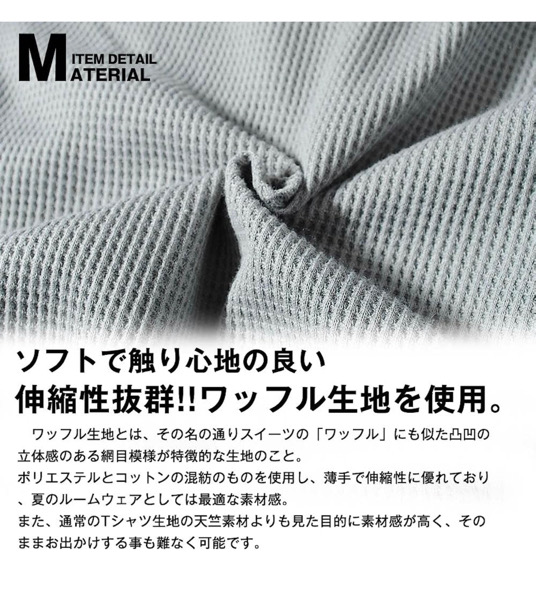 こちらフルーツオブザルームのパジャマなのですがワッフル地で厚みが少しあるのですが肌触りも良く、汗の吸収もいいので寝てて気持ちよかったりします。